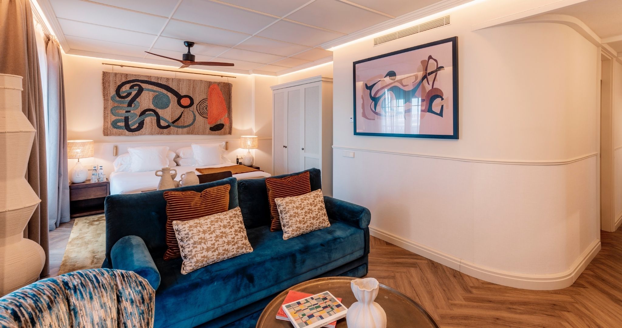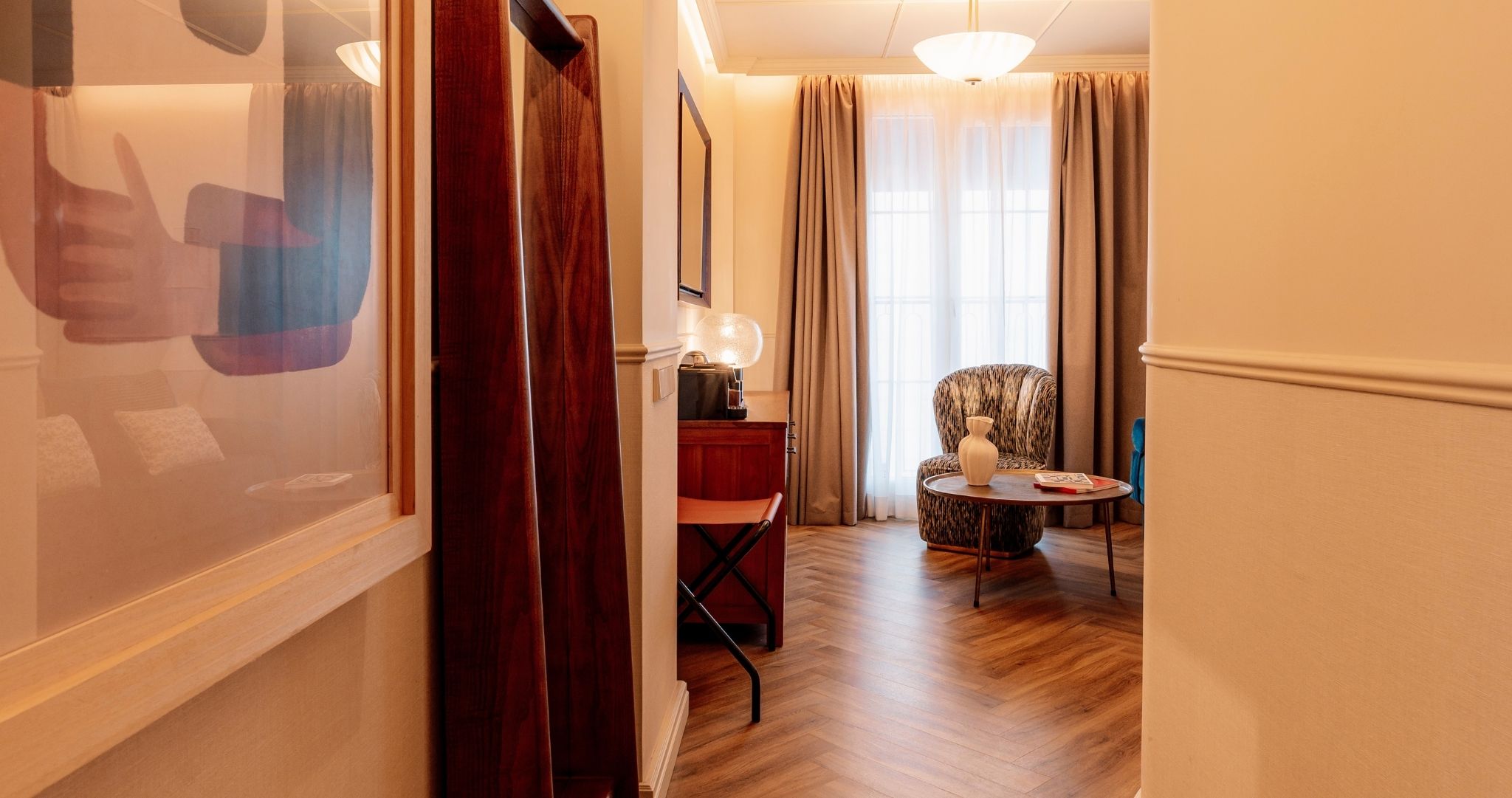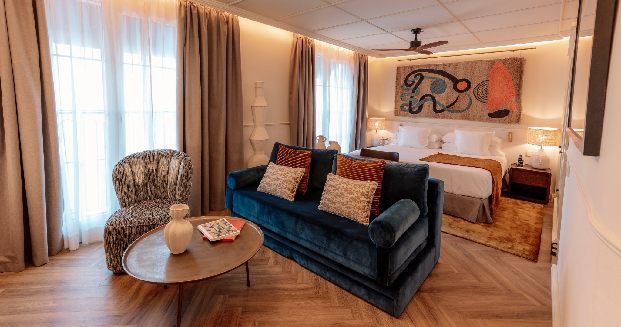 Con un amplio espacio, abundante luz natural y un cómodo sofá; esta habitación cuenta con dos ventanas francesas, TV y escritorio para que disfrutes de una estancia premium. Y como no puede faltar un momento de relax cuando visitas la ciudad, el espacio cuenta con una bañera para que desconectes de todo y disfrutes al máximo. Ideal para parejas y familias de hasta 2 niños.