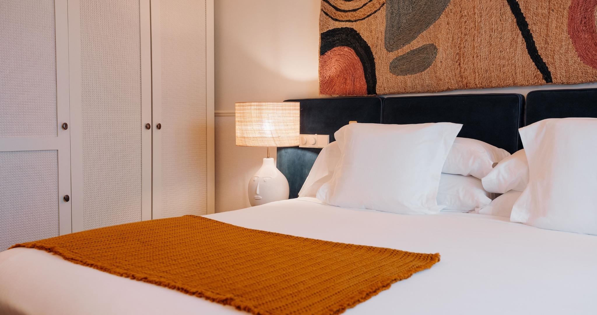 Als je je dag wilt beginnen en eindigen met de glans van de Andalusische lucht, hebben onze Premium kamers een ruim Frans raam dat warmte en natuurlijk licht biedt tijdens je verblijf. Evenzo zullen de kunstzinnige en geestige details, het ruime tweepersoonsbed en de volledig uitgeruste badkamer zorgen voor een droomverblijf in de Sevilliaanse regio.