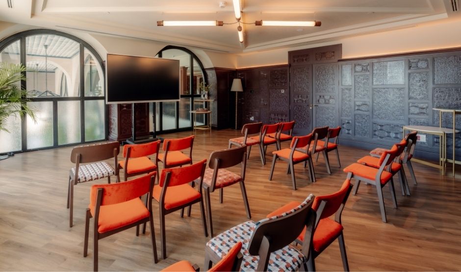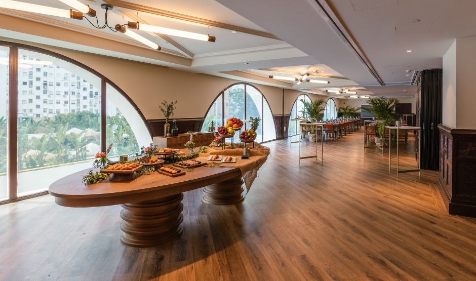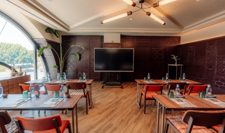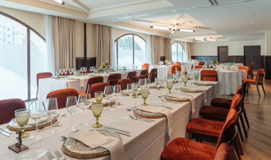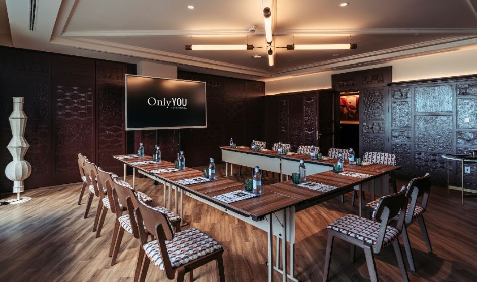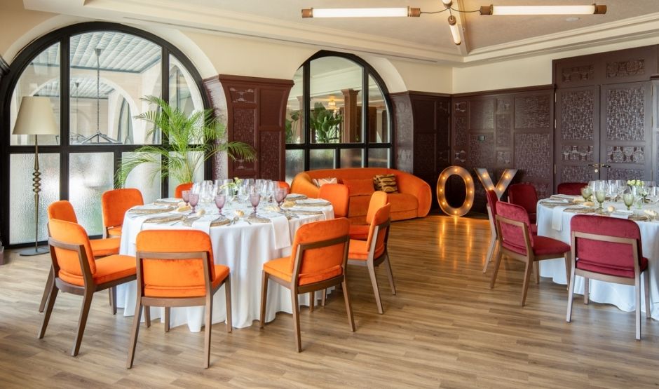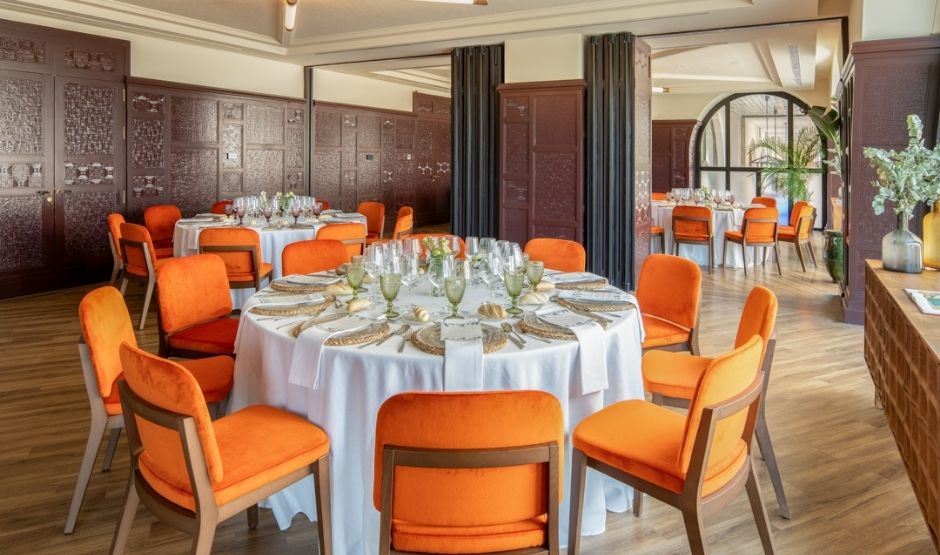 Met 320m² biedt deze zaal een eerbetoon aan de meest bijzondere maand van Sevilla, een tijd waarin de belangrijkste vieringen van de stad samenkomen. Deze zaal is ideaal voor grote banketten, congressen, bruiloften, modeshows en alles wat je maar kunt bedenken. Het is strategisch verbonden met onze Green House-ruimte en het zwembadgebied, om de ervaring en mogelijkheden voor jouw evenement te versterken.