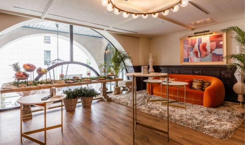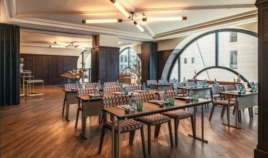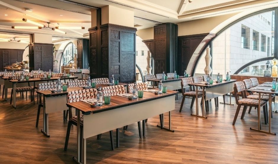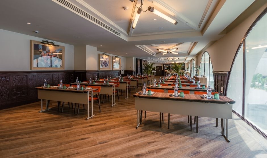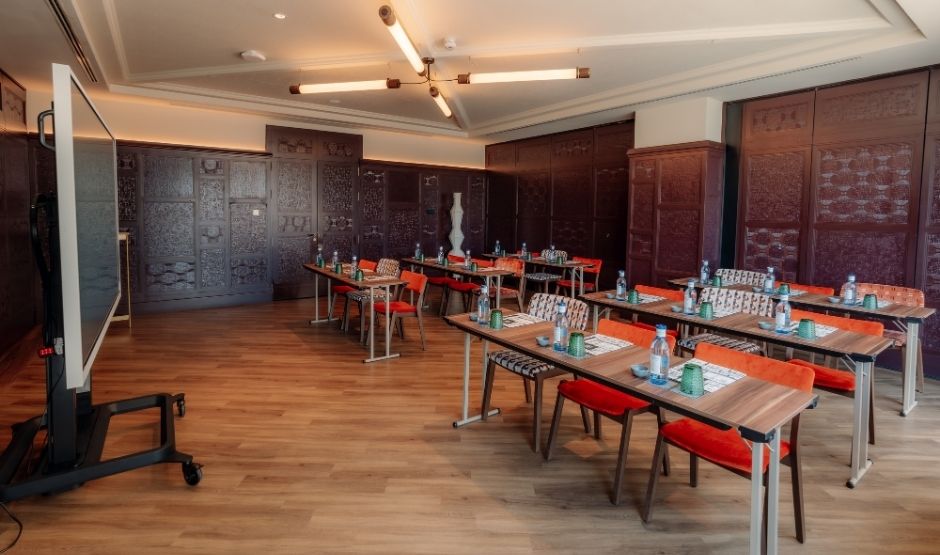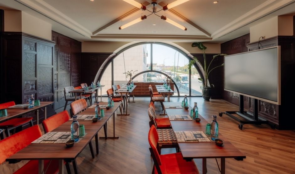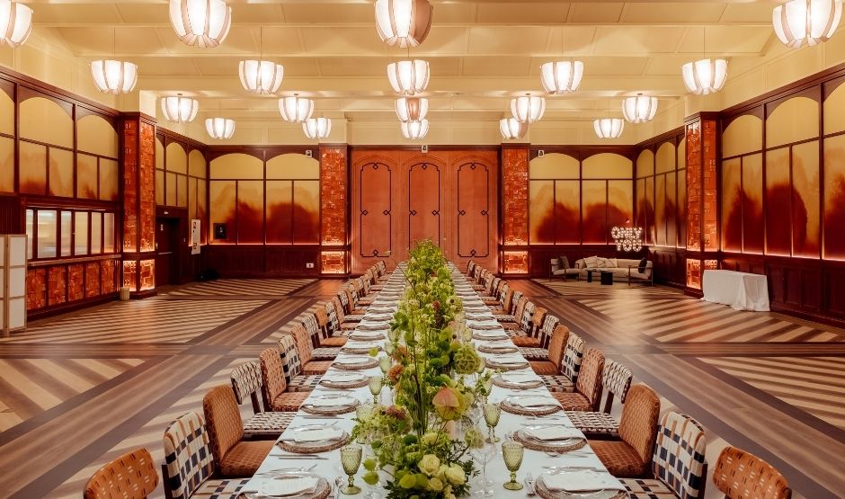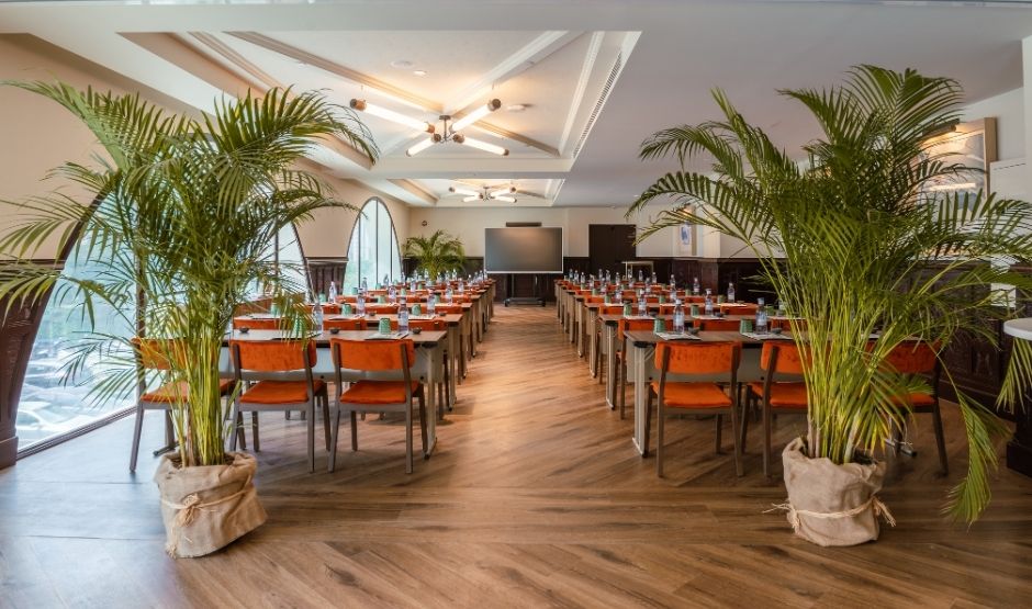 Met 320m² biedt deze zaal een eerbetoon aan de meest bijzondere maand van Sevilla, een tijd waarin de belangrijkste vieringen van de stad samenkomen. Deze zaal is ideaal voor grote banketten, congressen, bruiloften, modeshows en alles wat je maar kunt bedenken. Het is strategisch verbonden met onze Green House-ruimte en het zwembadgebied, om de ervaring en mogelijkheden voor jouw evenement te versterken.